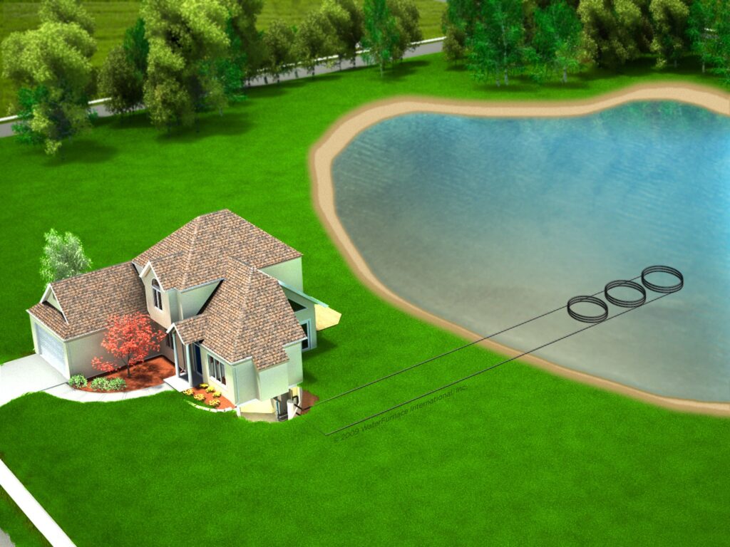 Horizontal loops involve one or more trenches HDPE pipes rated for high water pressure are inserted, and the trenches and covered. A typical home requires at minimum a quarter of an acre to do this process.Vertical loops are used when space is tighted. Holes are drilled hundreds of feet into the ground, pipes with special u-bend fittings are inserted into the holes to circulate water through the pipes. If you have a lake or pond near your home, a pond loop can be installed. A series of coiled, closed loops are sunk to the bottom of the lake or pond. The natural cool temperature of the water acts to heat and cool.